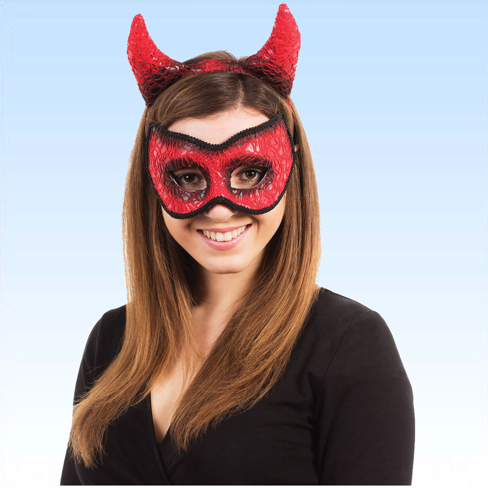 Die Augenmaske Teufel + Hörner Maske Teufel Teufelin Teufelsmaske besteht aus einer rot/schwarzen Augenmaske und Hörnern zum Aufsetzen.