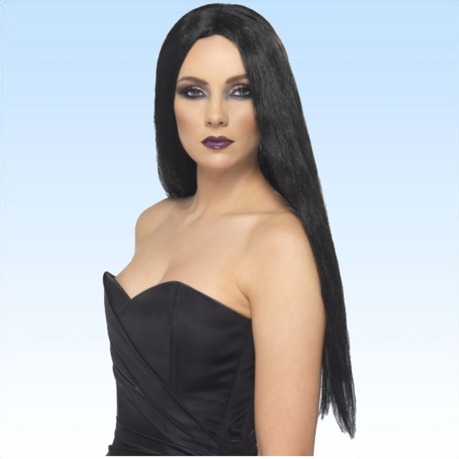 Die ideale Perücke für Kostüm Hexe, Vamp, Vampirette, Midnight Lady und viele andere Kostüme. Kann natürlich auch im Alltag verwendet werden.