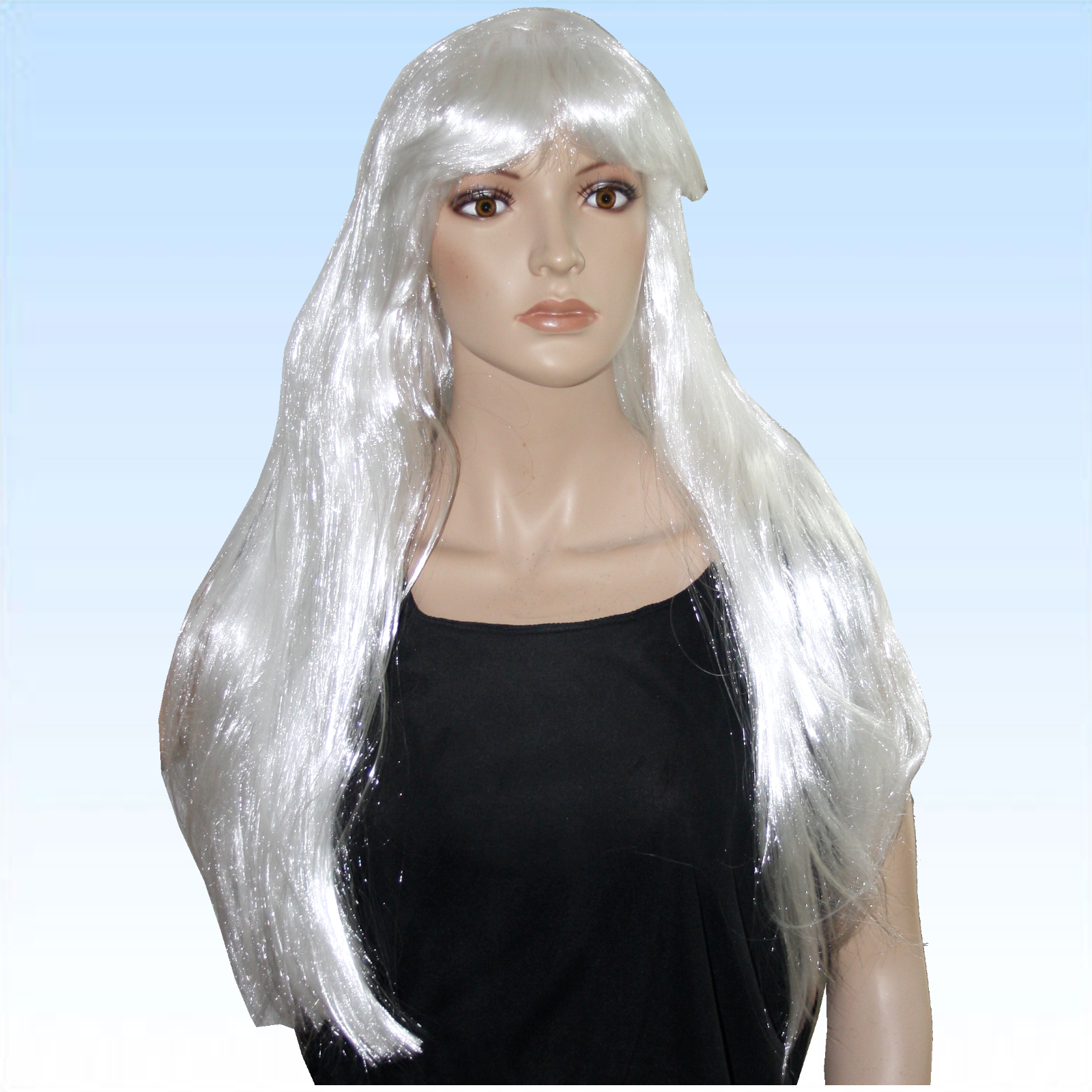 Weiß glänzende Langhaarperücke für Engelskostüme, Partys, Alltag u.v.m.