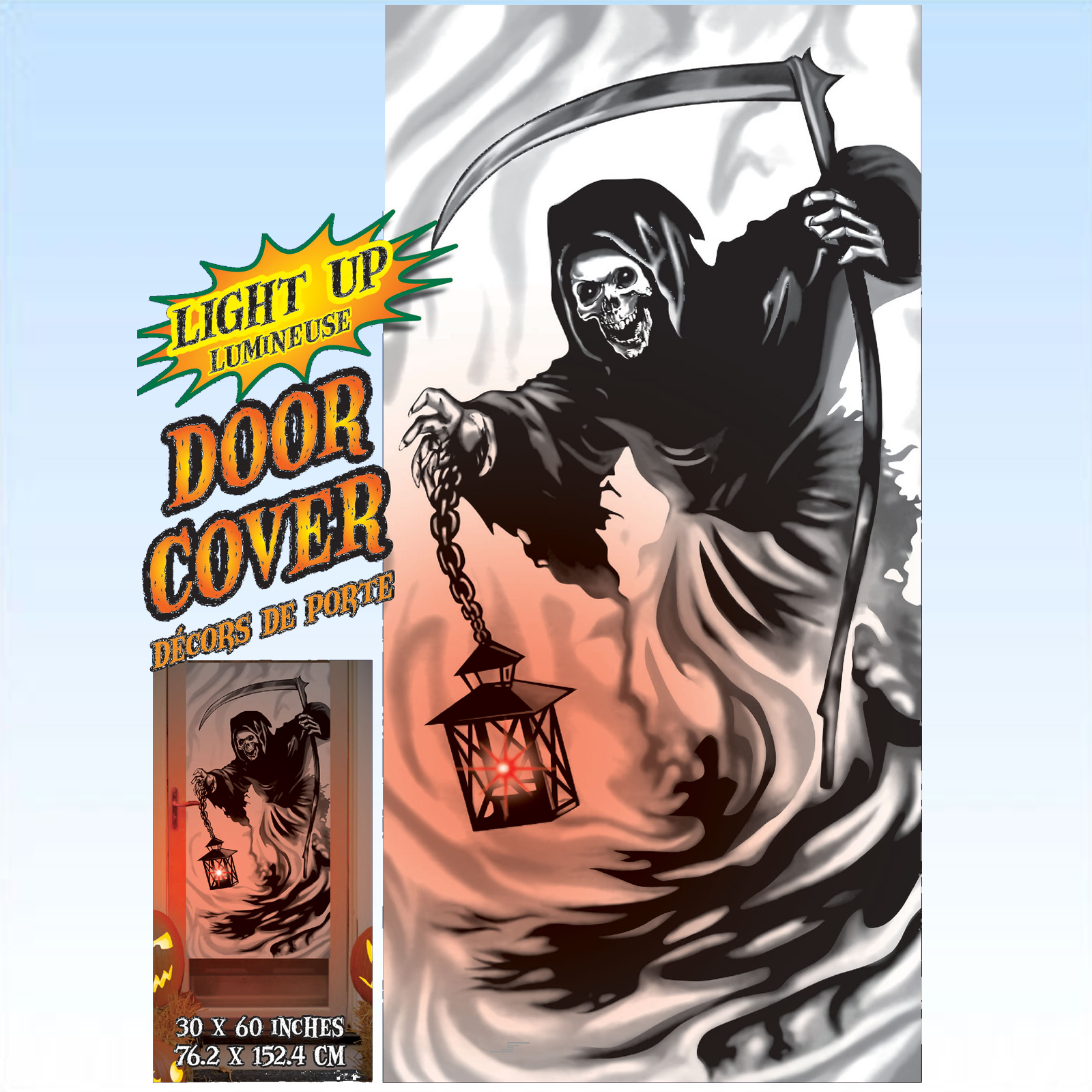 Das Türposter Sensenmann hat eine rote LED, mit der man die Laterne des Sensenmanns blinken lassen kann.