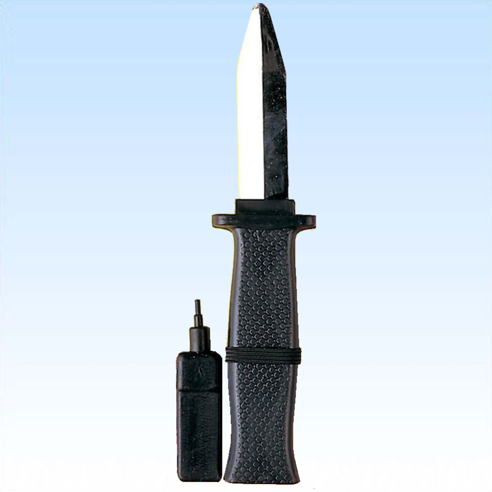 Mit dem spritzenden Messer kann man zwar nichts schneiden, aber natürlich prima andere erschrecken.